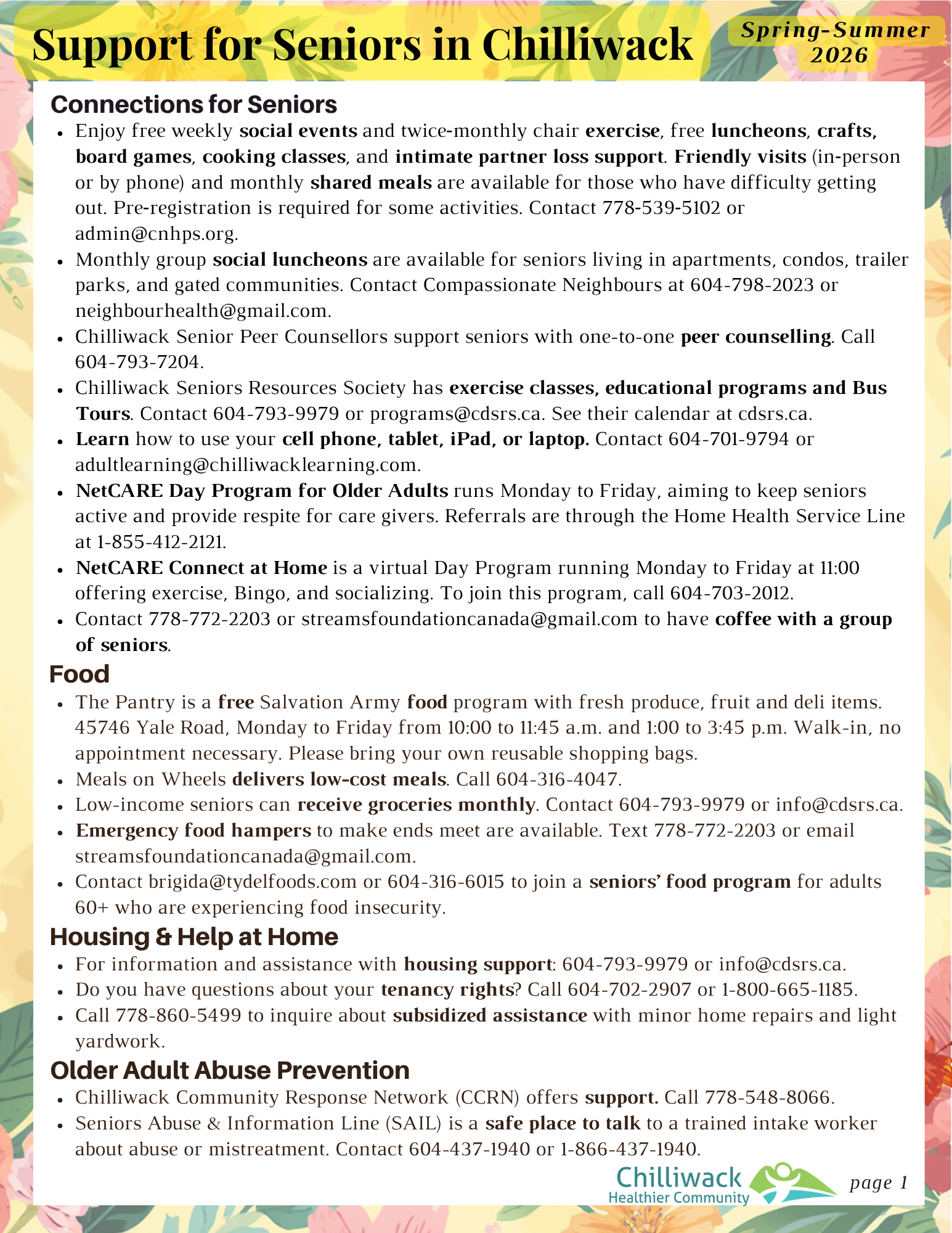 Support for Seniors in Chilliwack - Spring & Summer 2026